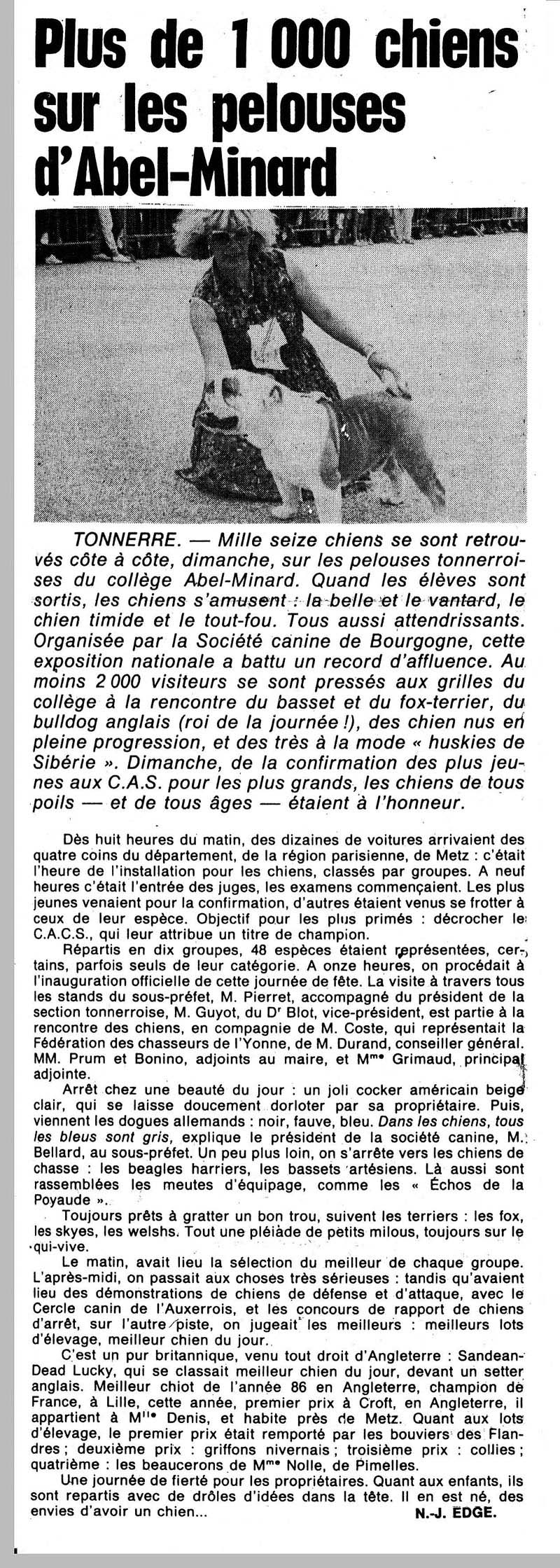 Il était chiot bulldog de l'année en 1986