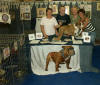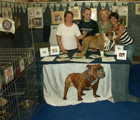 Florence FORESTI et Bernie sur le stand du Club du Bulldog au championnat de France Le Bourget |
